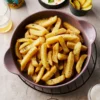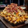 Seasoned beer battered steak fries covered in cheesy sauce.